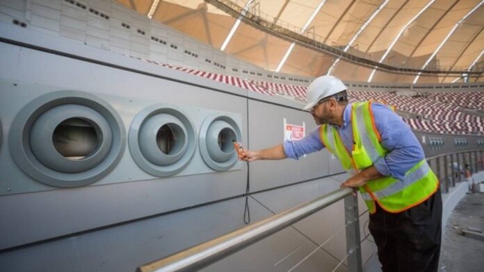 Los días de partido, 40.000 personas llenan las gradas, y cada una de ellas es una fuente de calor y humedad. La combinación de la temperatura ambiente de Qatar, y el calor generado dentro del estadio, requiere un sistema de refrigeración eficaz.